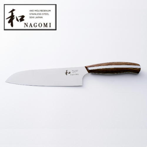 「和 NAGOMI」の三徳包丁は切れ味が鋭く、ハンドルに段差がないので手とひとつになる様なグリップ感。